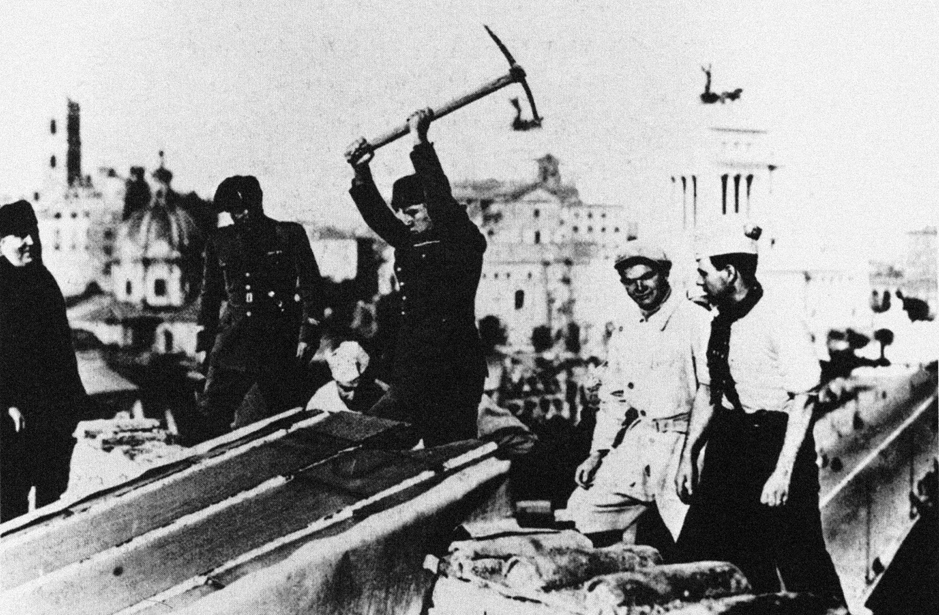 Mussolini starts demolition work for the Mole Littoria, October 1934