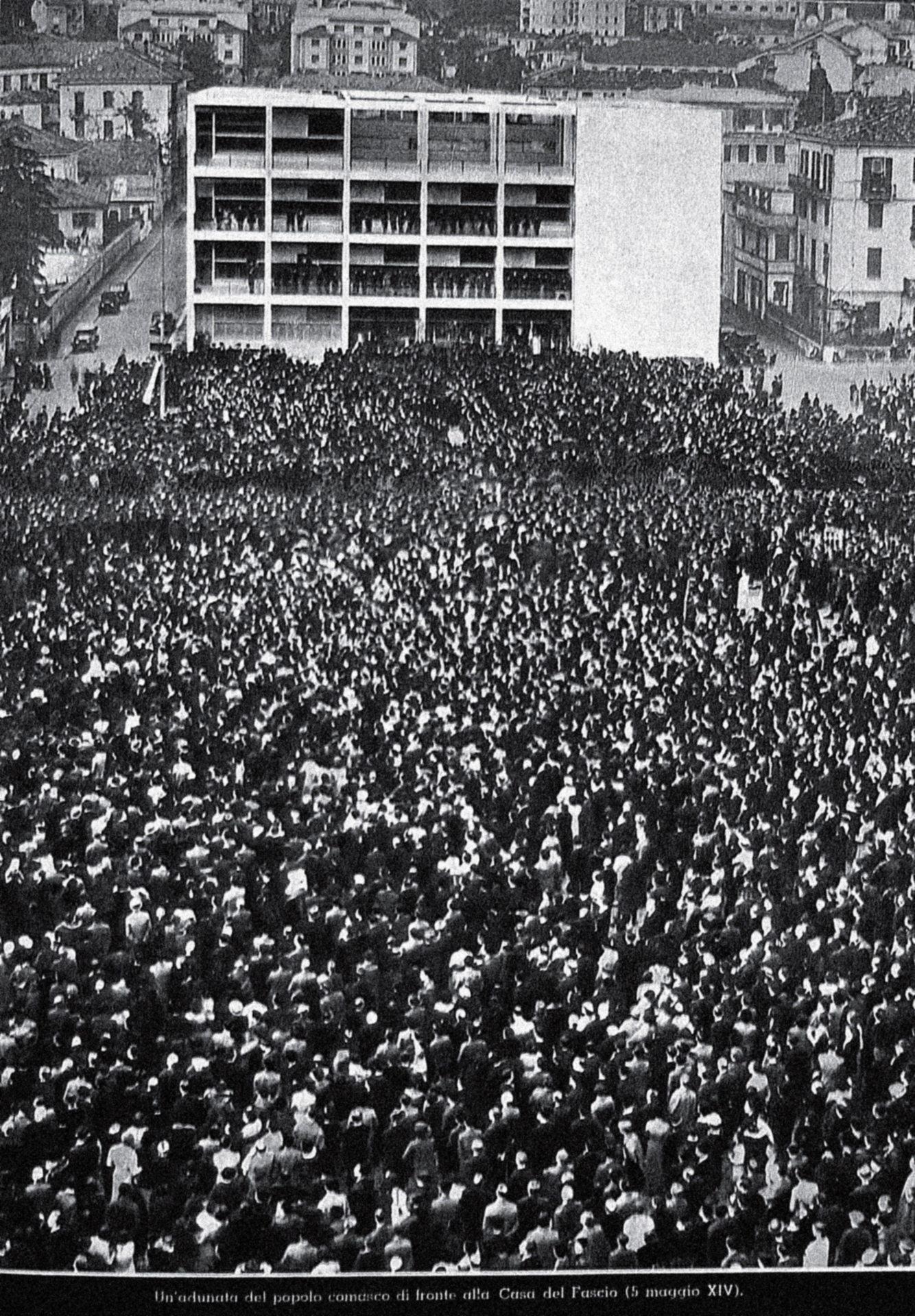 Giuseppe Terragni, Casa del Fascio, Como, during a mass rally on May 5, 1936