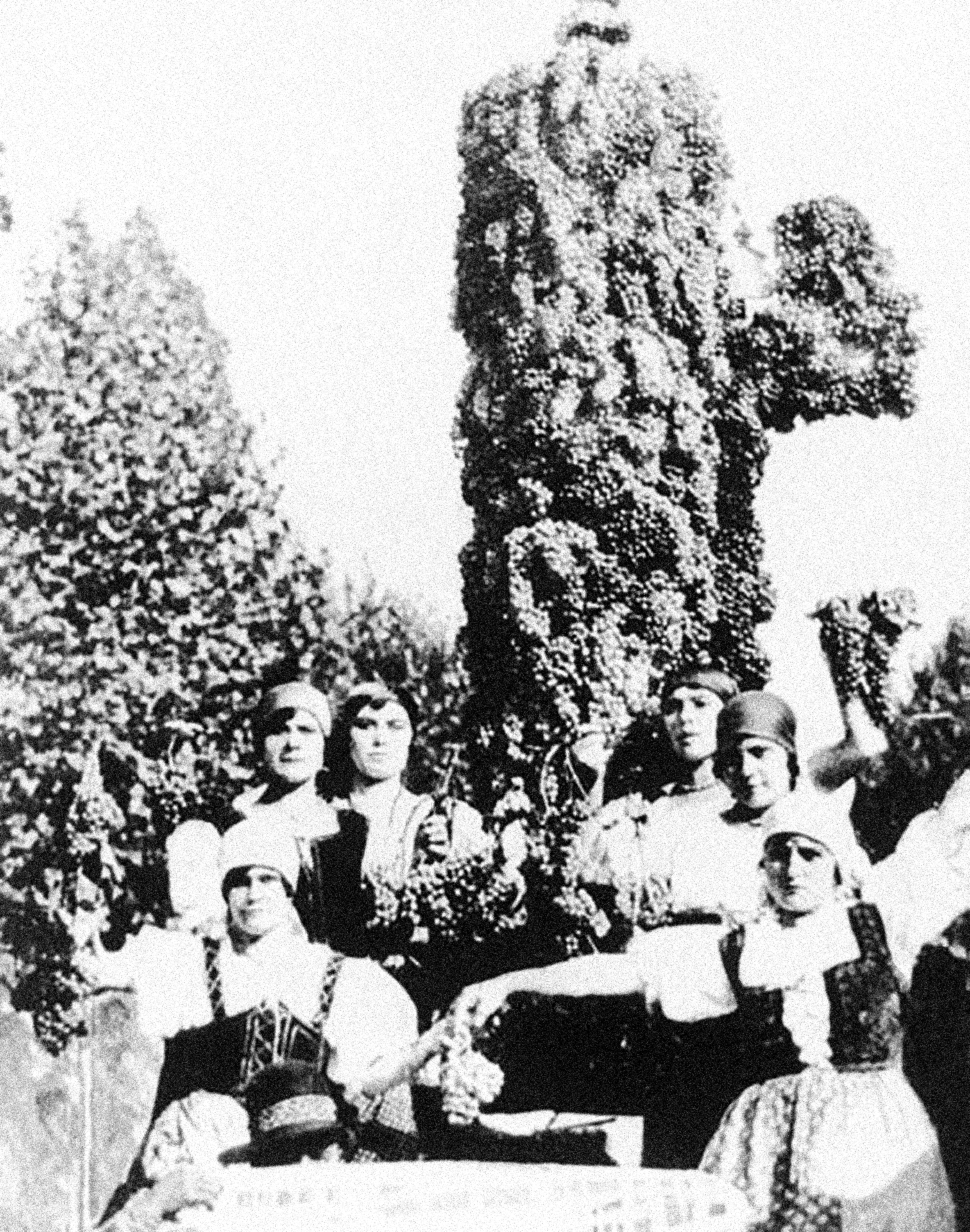 A fascio made of grapes at the Grape Festival, Tuscany, 1931