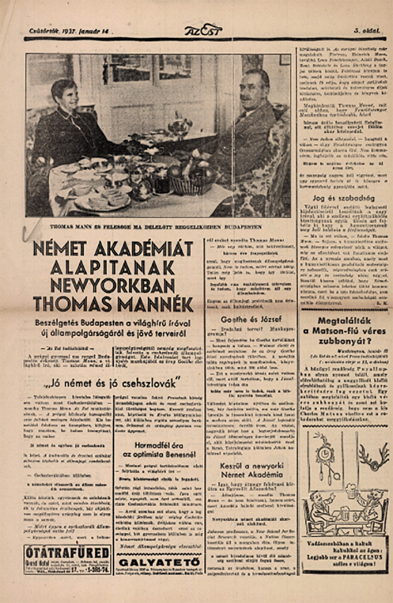 Interview with Thomas Mann o the occasion of his 1937 Budapest visit