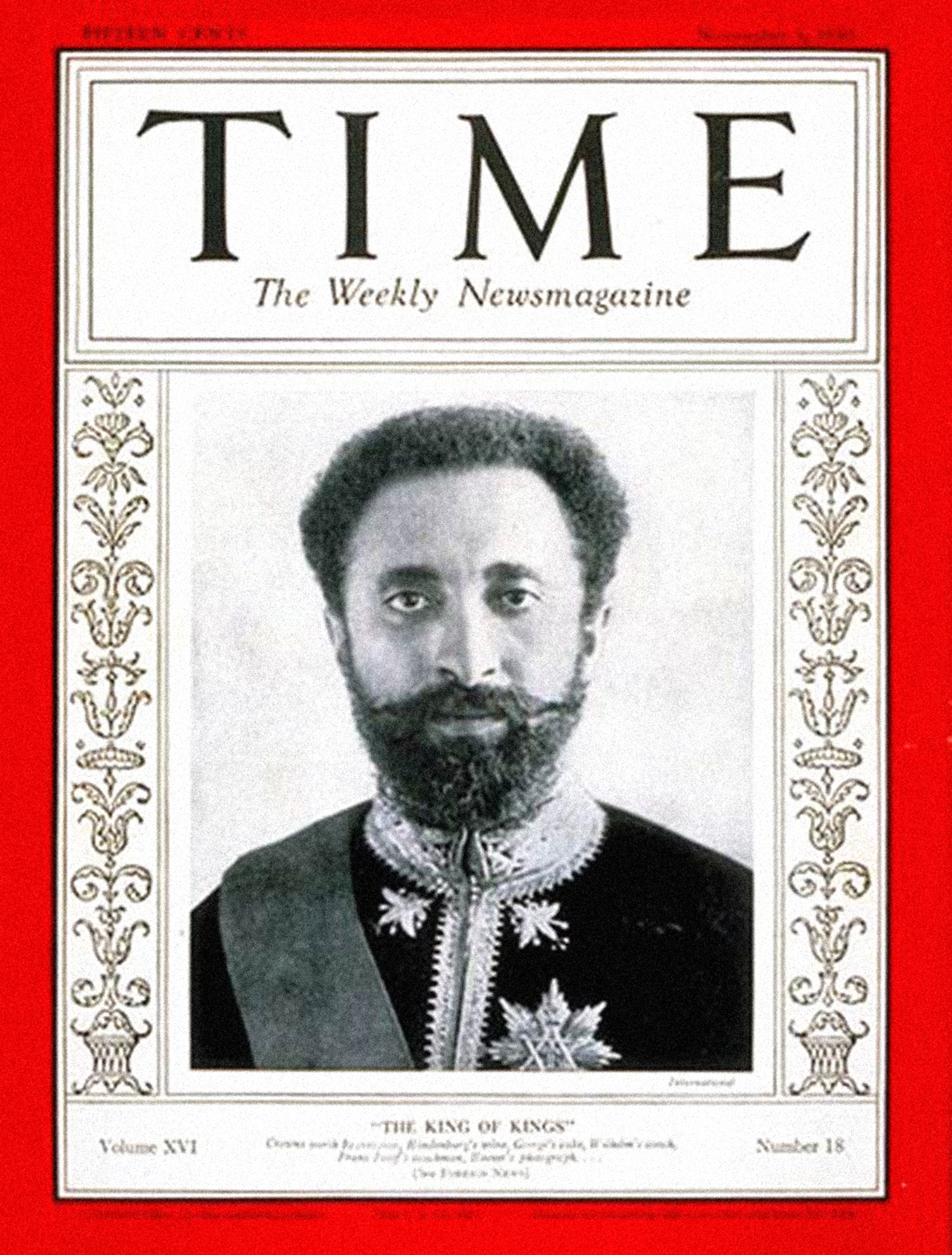 Cover of Time Magazine: Haile Selassie, the Emperor of Ethiopia, November 3, 1930
