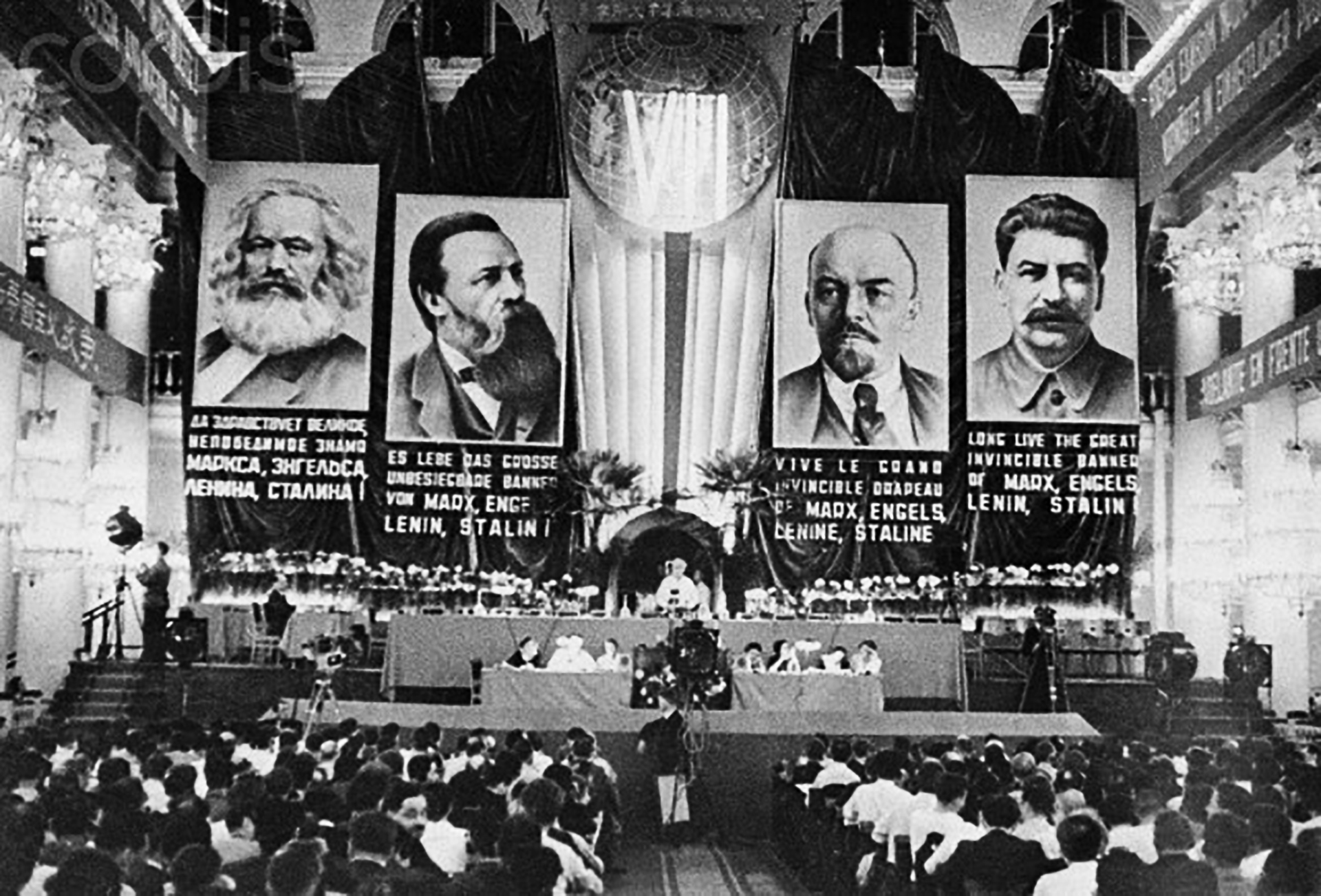 The 7th World Congress of the Communist International (Comintern) in the Halls of Pillars of the House of Unions in Moscow, 1935