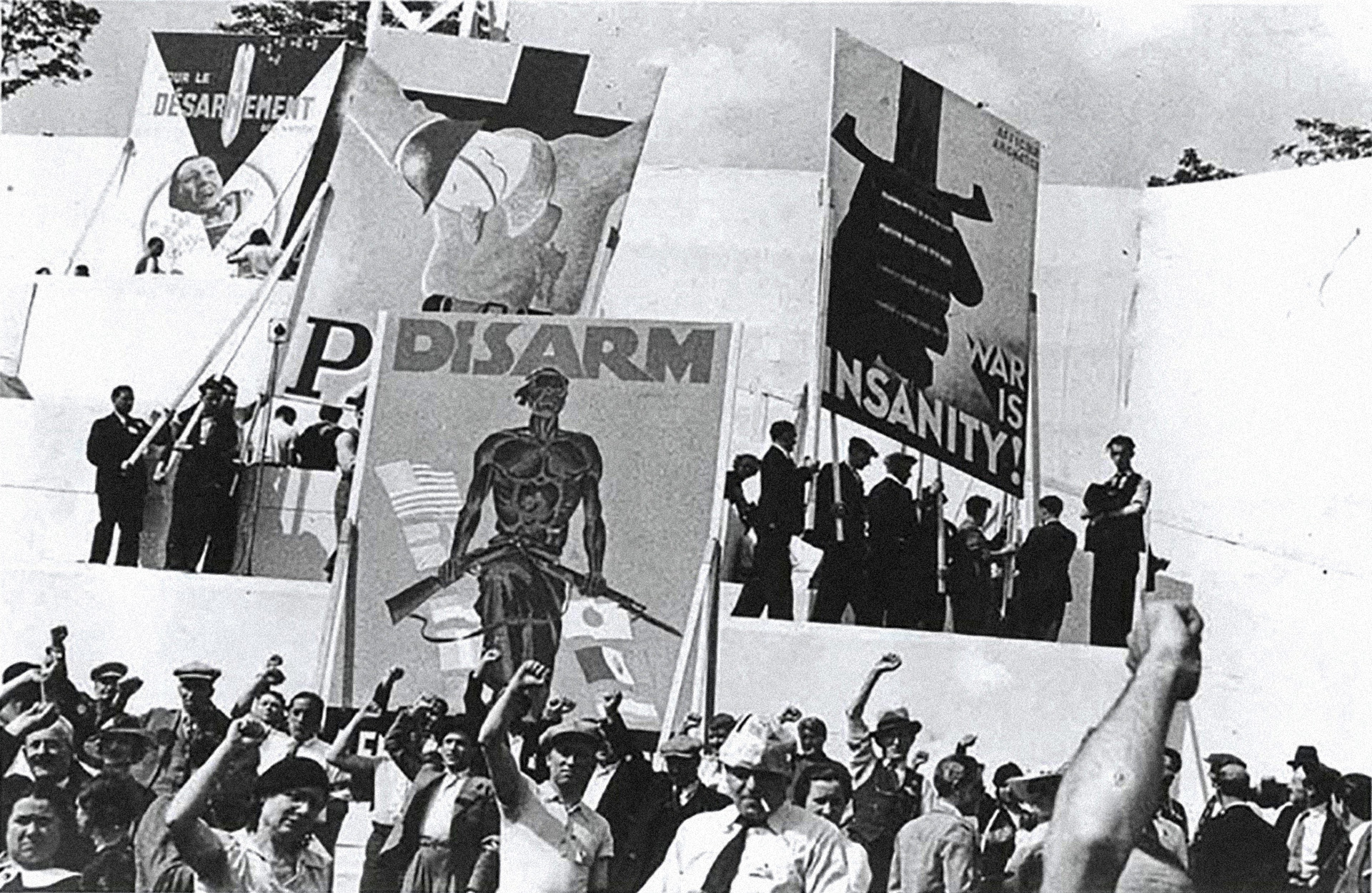 The fight against Fascism was backed by the new Comintern policies, and it found supporters also outside of the political left. One of the major issues that occupied—sometimes literally—the public space was the possibility of a new war. The immense loss of life during the First World War, for what became regarded as futile reasons, caused a sea-change in public attitudes to militarism. In the aftermath of WWI many organizations formed, including the War Resisters’ International, the Women's International League for Peace and Freedom, the No More War Movement and the Peace Pledge Union, that led international anti-war campaigns. The League of Nations also convened several disarmament conferences in the inter-war period such as the Geneva Conference in 1927. By the mid-1930s, the war seemed closer than ever. Massive anti-war demonstrations and campaigns protested the accelerating armament, often backed up by left-wing or Popular Front governments, as was the case in France.