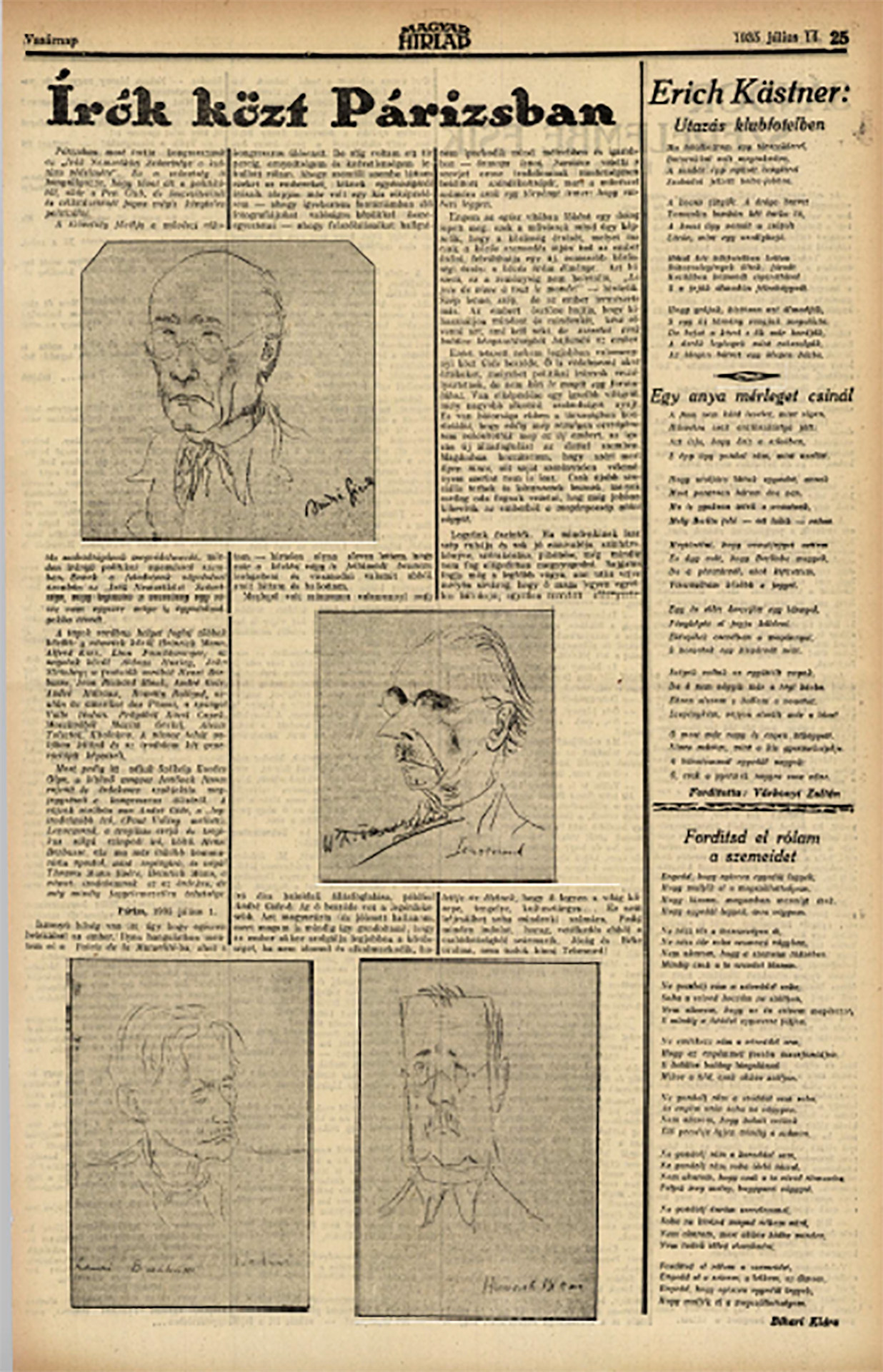 “Among writers in Paris” – report in the Magyar Hírlap on the First International Congress of Writers for the Defense of Culture, 1935