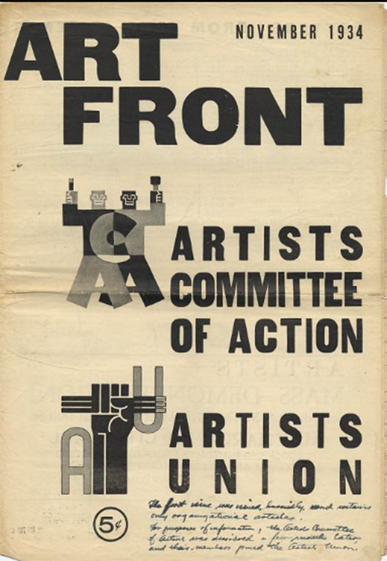 The cover of the first issue of Art Front, the monthly of the Artists’ Union, November 1934