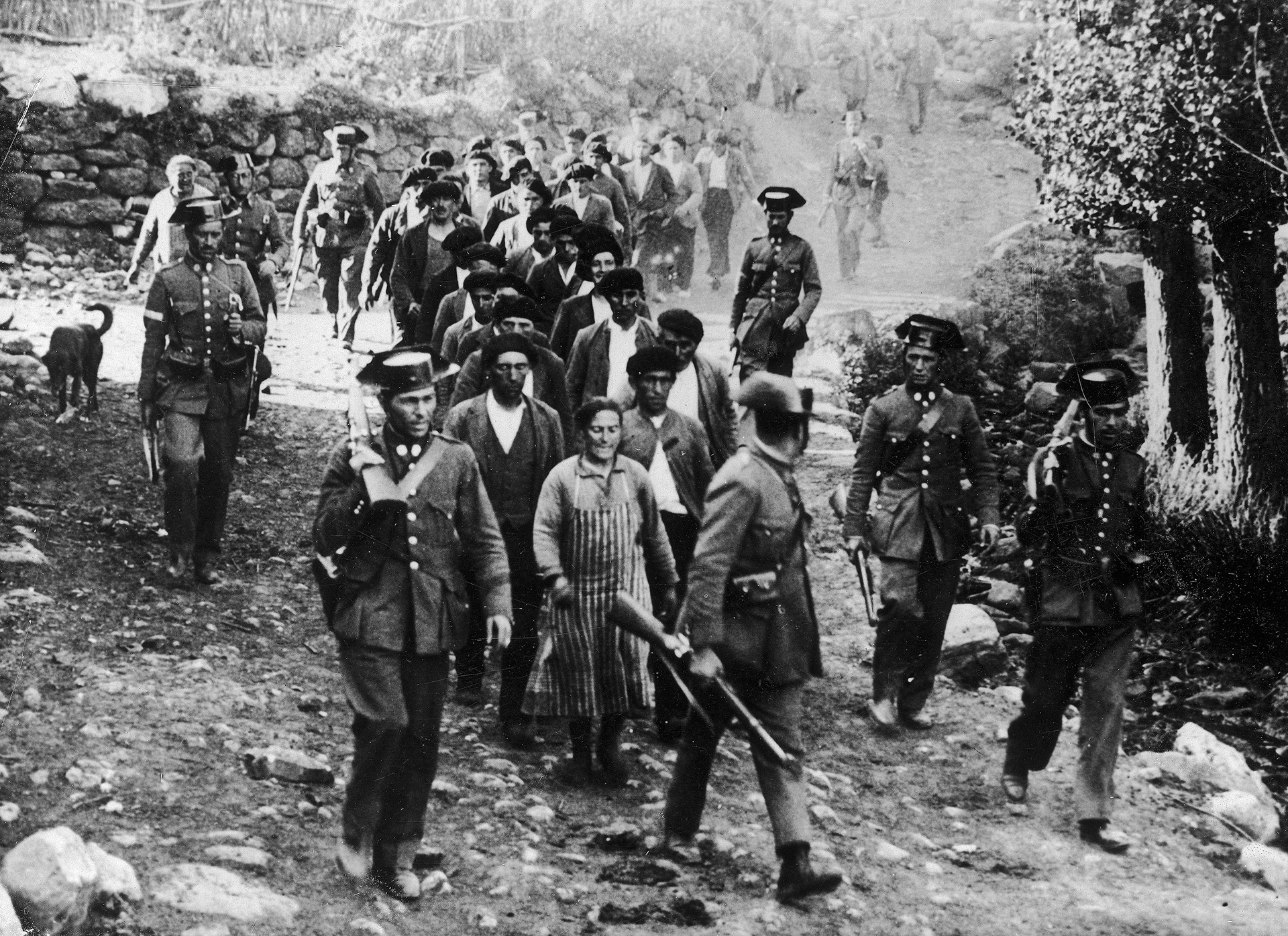 Column of Guardias Civiles [civil guards] during the Asturian Revolution, Brañosera, 1934