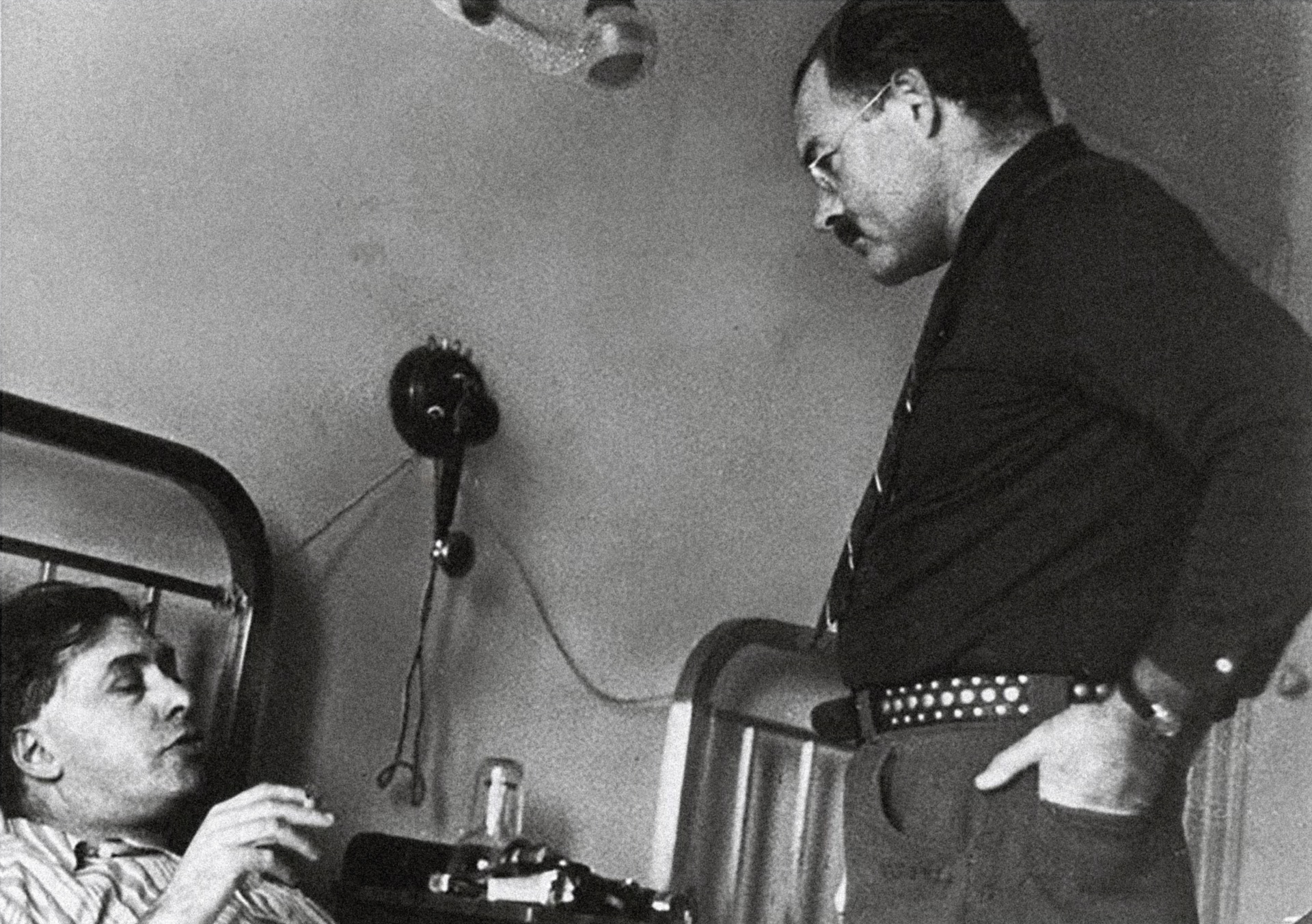 Robert Capa [Friedmann Endre Ernő], Ernest Hemingway and Ilya Grigoryevich Ehrenburg, Valencia, 1937