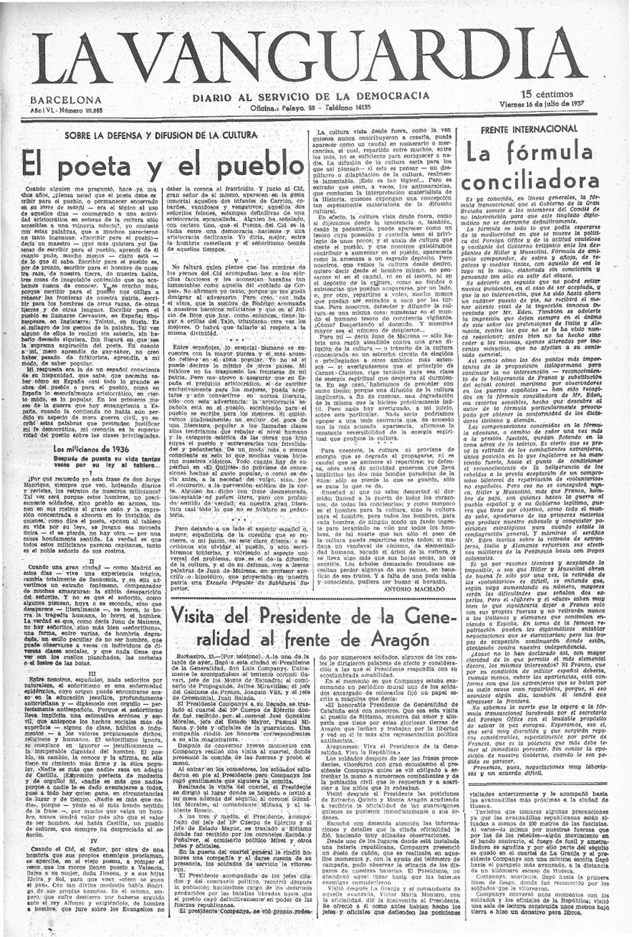 El poeta y el pueblo [The poet and the people], a speech by Antonio Machado to the Second International Congress of Writers for the Defense of Culture, 1937