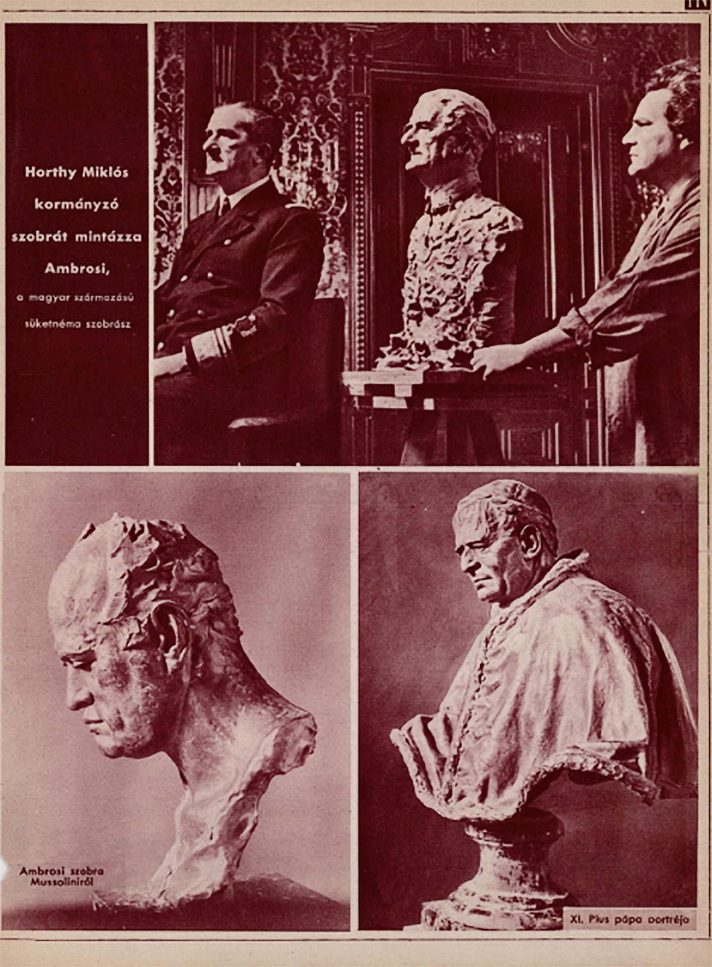 “The statue of Regent Miklós Horthy was modeled by Ambrosi, a deaf-mute sculptor of Hungarian origin (Below: the bust of Mussolini and of Pope Pius XI, also by Ambrosi), 1934