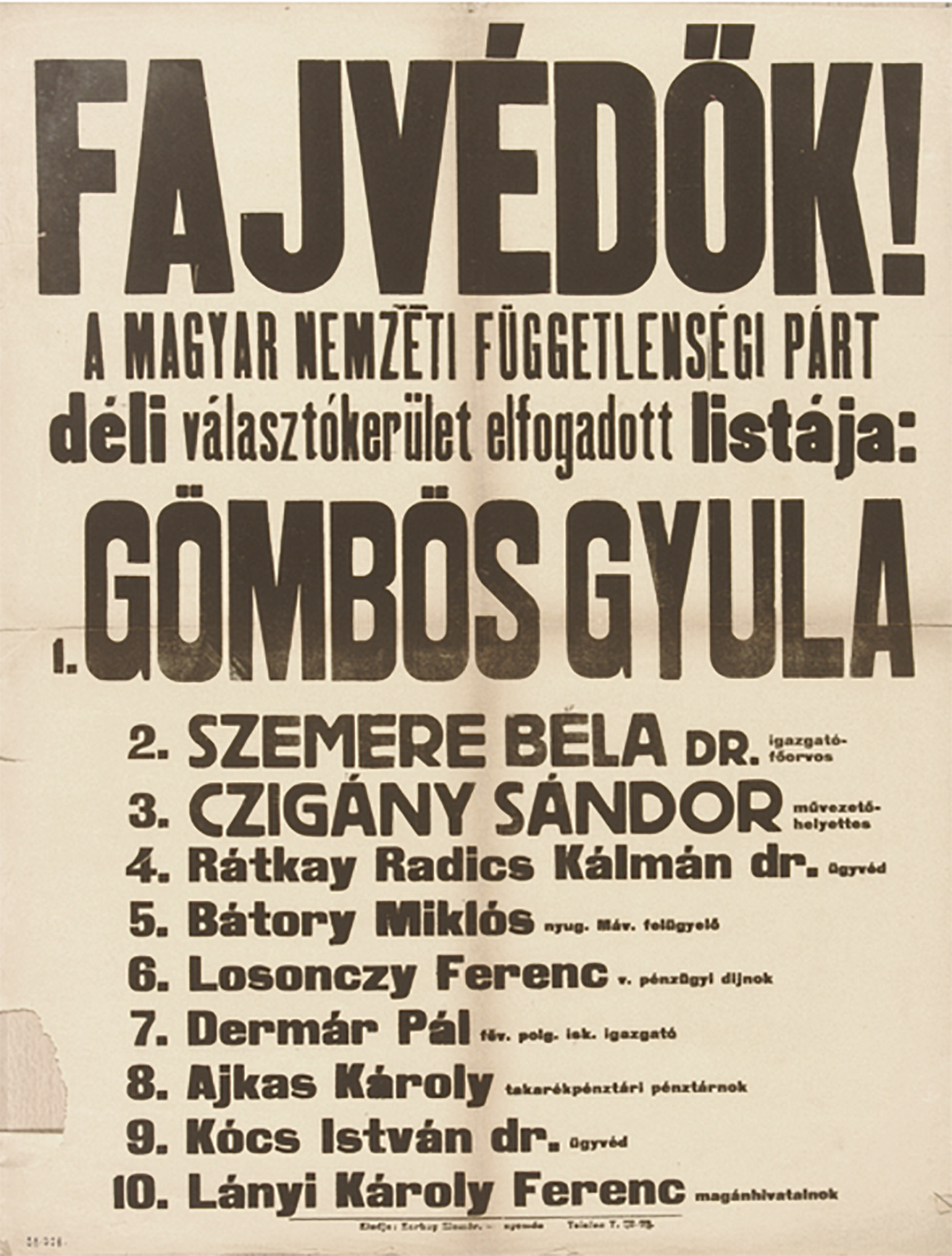 “Race Defenders! The list of the Southern Constituency of the Hungarian National Independence Party”, 1920