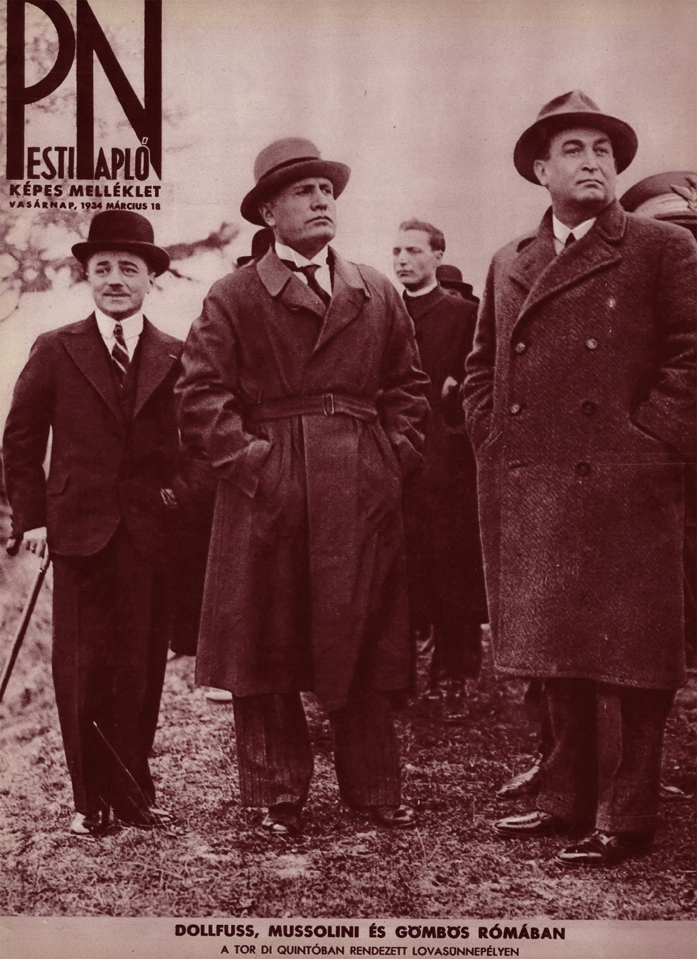 The foreign policy of the Gömbös government tried to consolidate the already existing good relations with Mussolini’s Italy, the model of his political desires, and open up new channels to the Austro-Fascist dictatorship of chancellor Dollfuß in Austria, and towards Germany after Hitler came to power. The corroboration of German contacts were not primarily vital for ideological reasons. The motivations were rather based on the common interest to revise the Treaties of Versailles, and the opening of the German (agricultural) market to Hungarian commodities. These foreign policy maneuverings were not unproblematic, since in those times Italy and the German Reich were to a certain extent still rivals on the international scene. German aspirations for the annexation of Austria (Anschluss) were widely known, while Gömbös had always been a firm proponent of an independent Austria. Still, undoubtedly, that was the period when Hungarian foreign policy, after the attempts at British orientation throughout the 1920s, and after a short and aborted endeavor of French orientation in 1931, gradually, but definitively turned towards the future Axis powers, Nazi Germany and Fascist Italy.