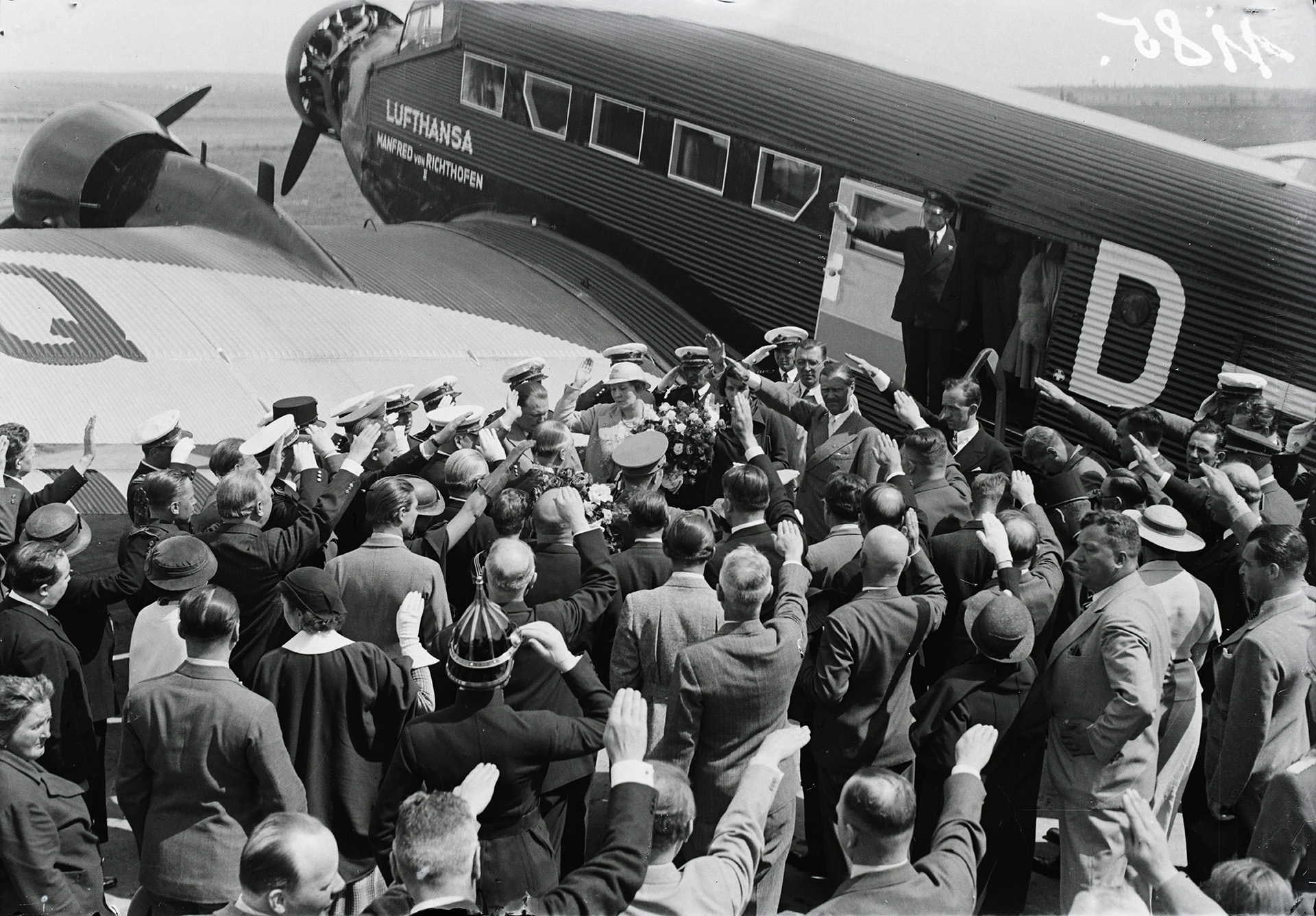 Hermann Goring (then Prussian prime minister) and his wife arrive on a two-day visit to Budapest on their way to the Adriatic Sea. Mátyásföld Airport, May 25, 1935