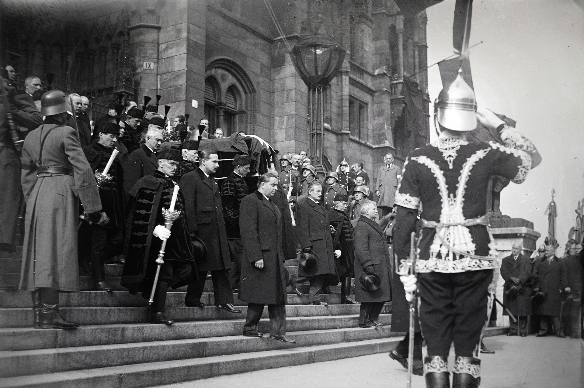 The funeral of the Prime Minister Gyula Gömbös: after the farewell, the mourning procession began in Lajos Kossuth Square, on the steps of the Parliament building, October 10, 1936