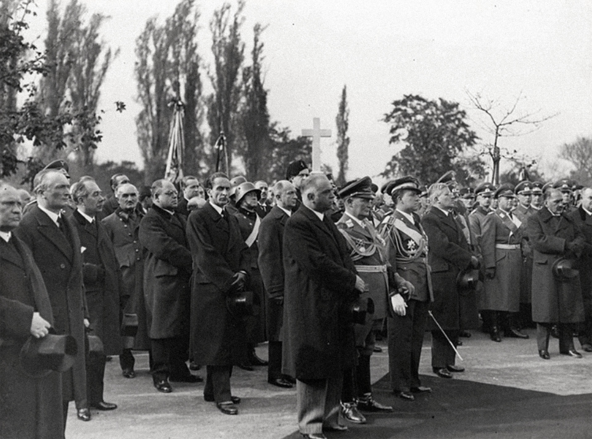 Prime Minister Göring, Foreign Minister Ciano, Chancellor Schuschnigg at the funeral of Prime Minister Gyula Gömbös in Kerepesi Cemetery, October 10, 1936.
