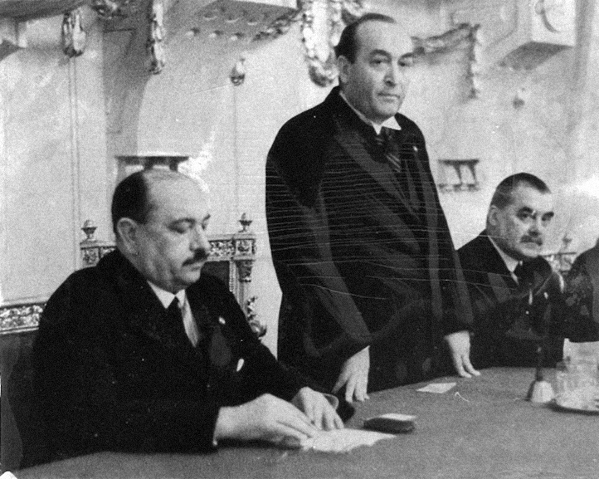 Gyula Gömbös, Bálint Hóman and Tivadar Zsitvay at the meeting of the National Work Center [Nemzeti Munkaközpont], 1933–1934