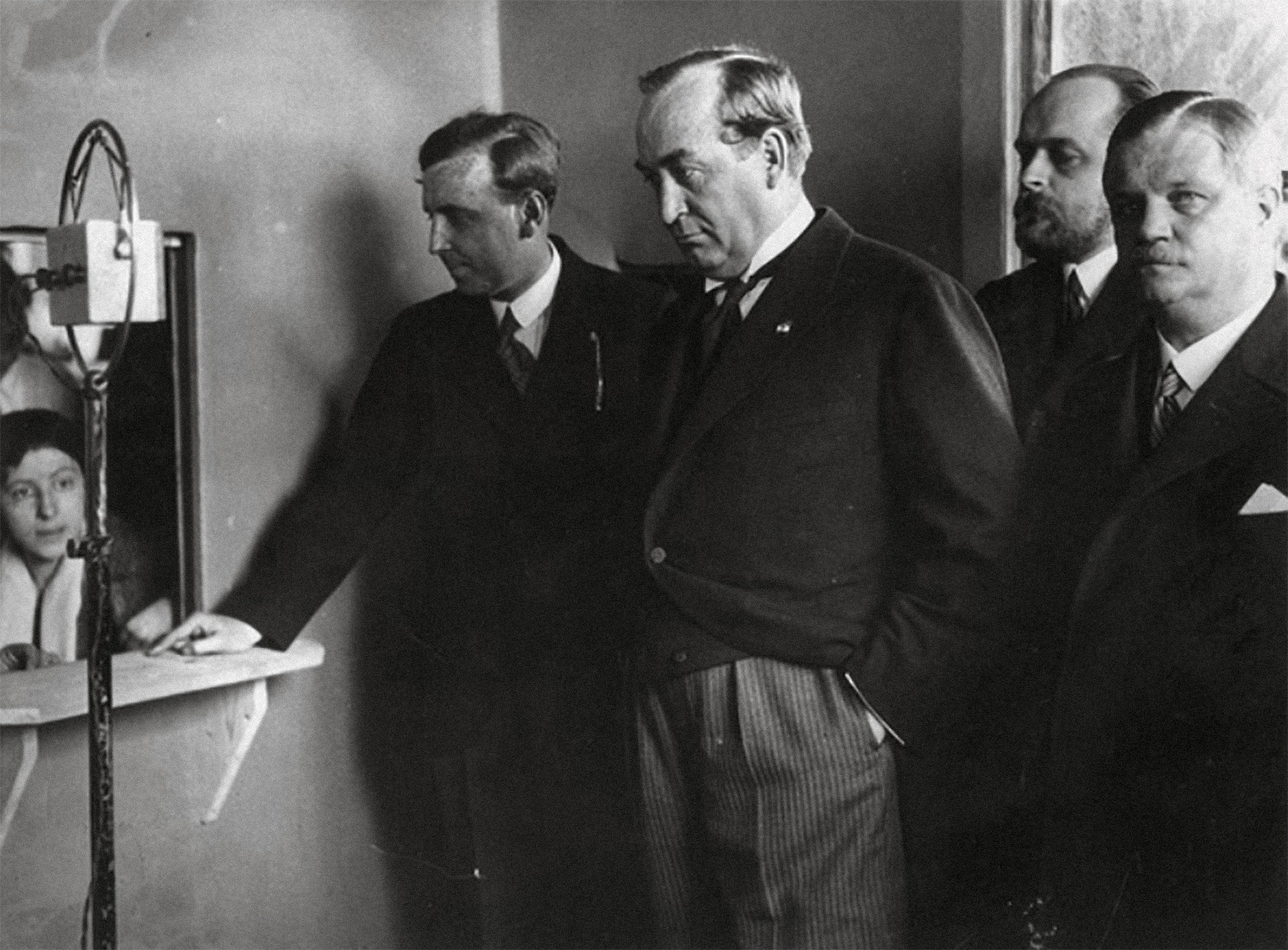 Gyula Gömbös, Gyula Somogyváry and Tihamér Fabinyi in the Hungarian Radio building, 1935