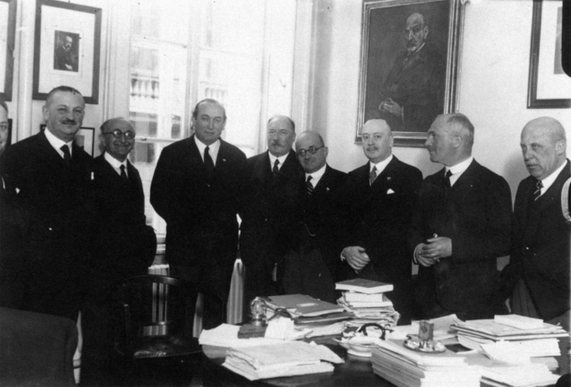 The Gömbös Government after the official swearing-in: Ferenc Keresztes-Fischer, Gyula Gömbös, Endre Puky, Miklós Kállay, Andor Lázár, Bálint Hóman, Béla Imrédy, Tihamér Fabinyi, István Bárczy Bárczy, 1932