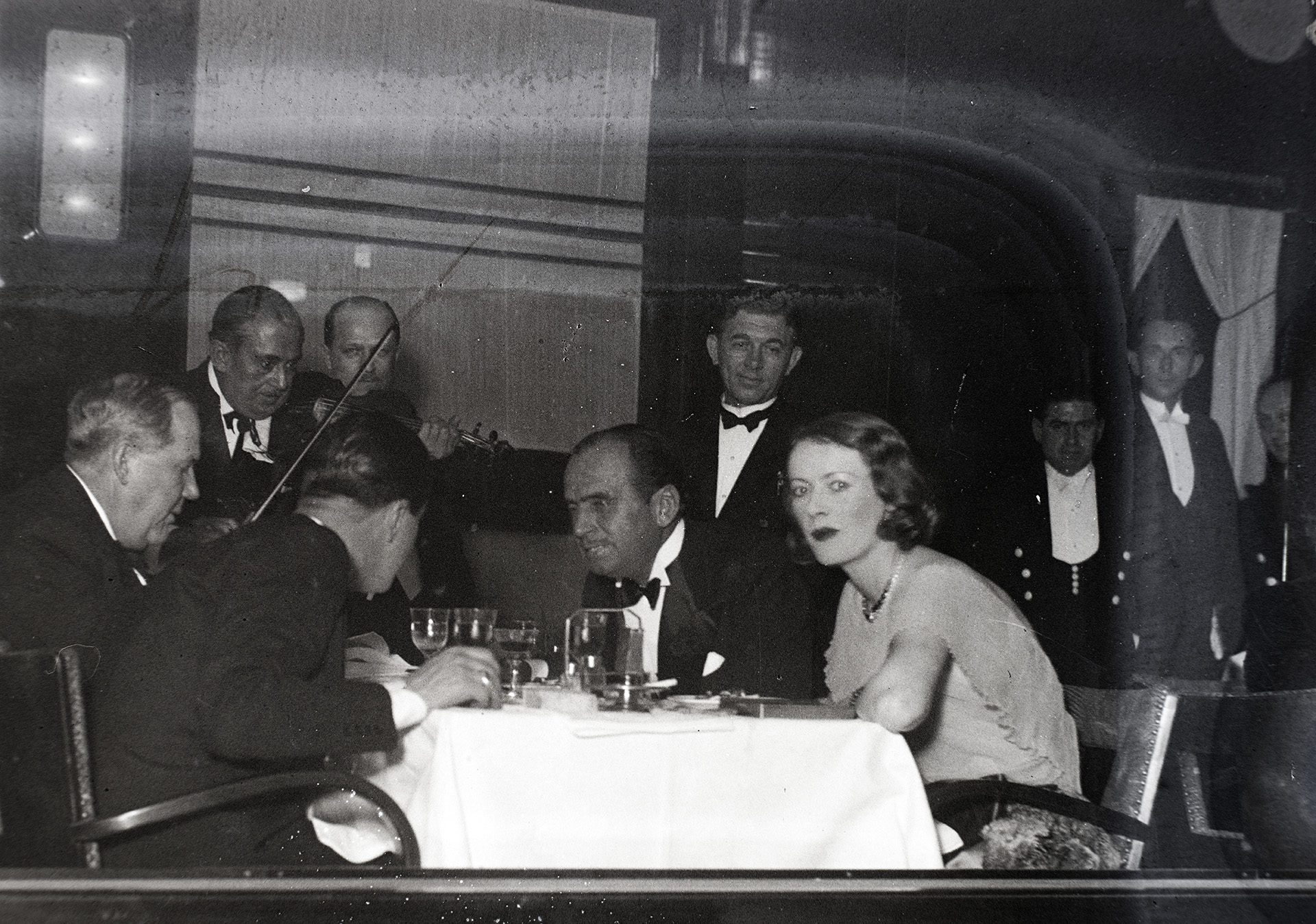 “Gypsy” musicians, with American filmactor Douglas Fairbanks and English film actress Sylvia Ashley, Budapest, 1935